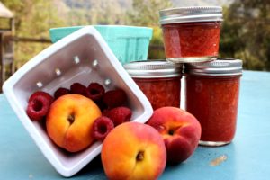 With summertime offering up gorgeous, in-season, perfectly-ripe peaches and raspberries, it seems like a great time to make a jam reminiscent of the dessert. This jam is delicious any way you eat it, but for an amazing treat, enjoy a big dollop it on top of vanilla ice cream!